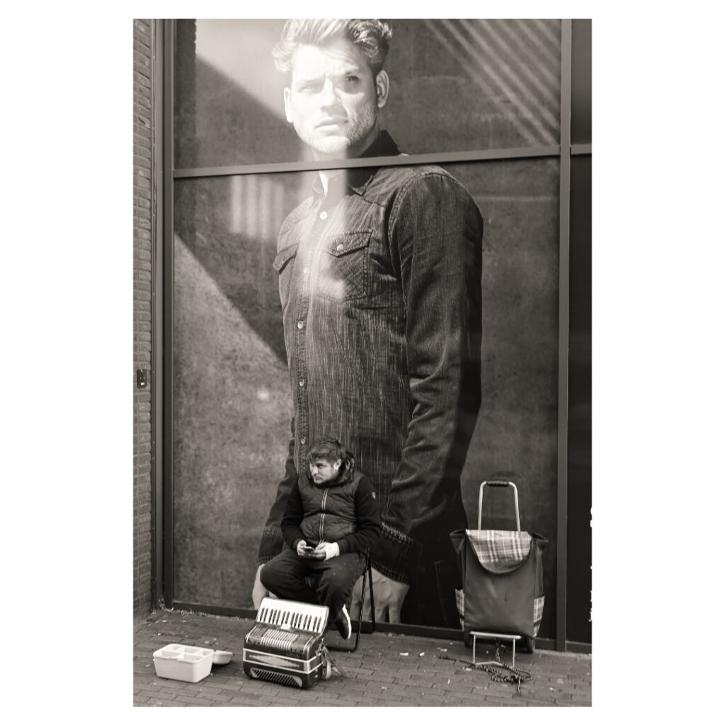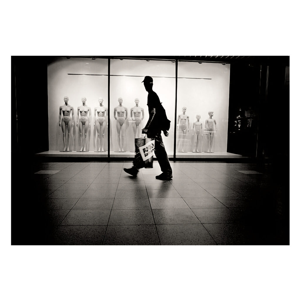 The street is always in motion, fleeting and hurried. The mindless determination of passersby, always busy, always on the move.